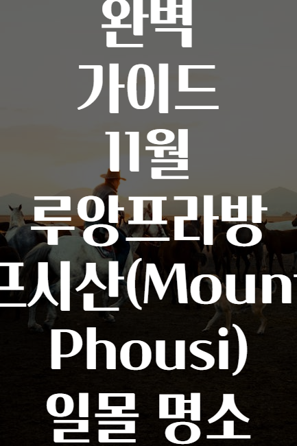 혹시 여행 계획 중 루앙프라방에 가신다면, 이 멋진 일몰 명소를 절대 놓치지 마세요! 🤩 특히 11월, 가을 햇살과 시원한 바람이 어우러진 이때는 프시산 정상에서의 일몰이 더욱 황홀하게 느껴집니다. 🌇🧡 오늘은 루앙프라방의 대표적 명소인 프시산(Mount Phousi)에서 즐기는 일몰 여행 꿀팁과 추천 코스를 모두 알려드릴게요! 😊
